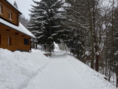 K chalupě lze dojet autem, v jakémkoli ročním období. Pohodlně zde zaparkuje 6 až 8 aut.